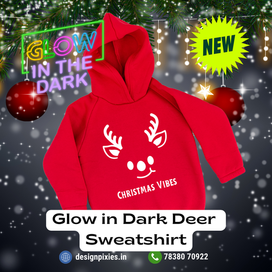 Glow In Dark Deer Hooded Sweatshirt | Red | Women | Men