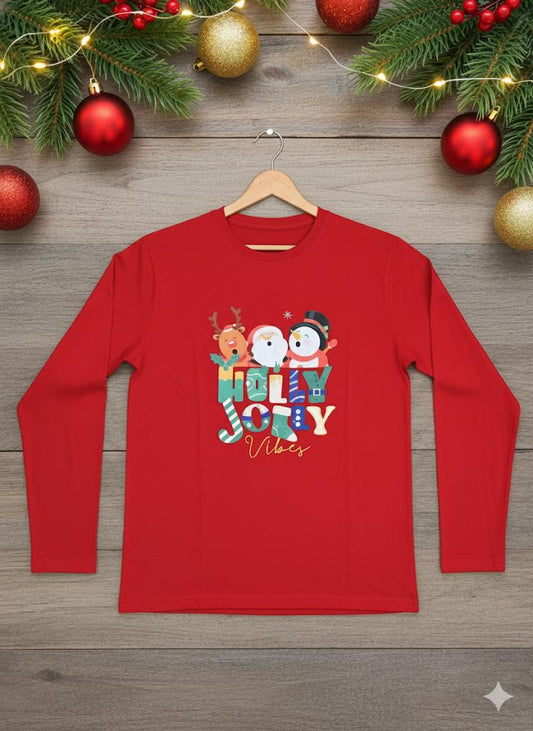 Holly Jolly Vibes Full Sleeves T-shirt | Red | Women | Men